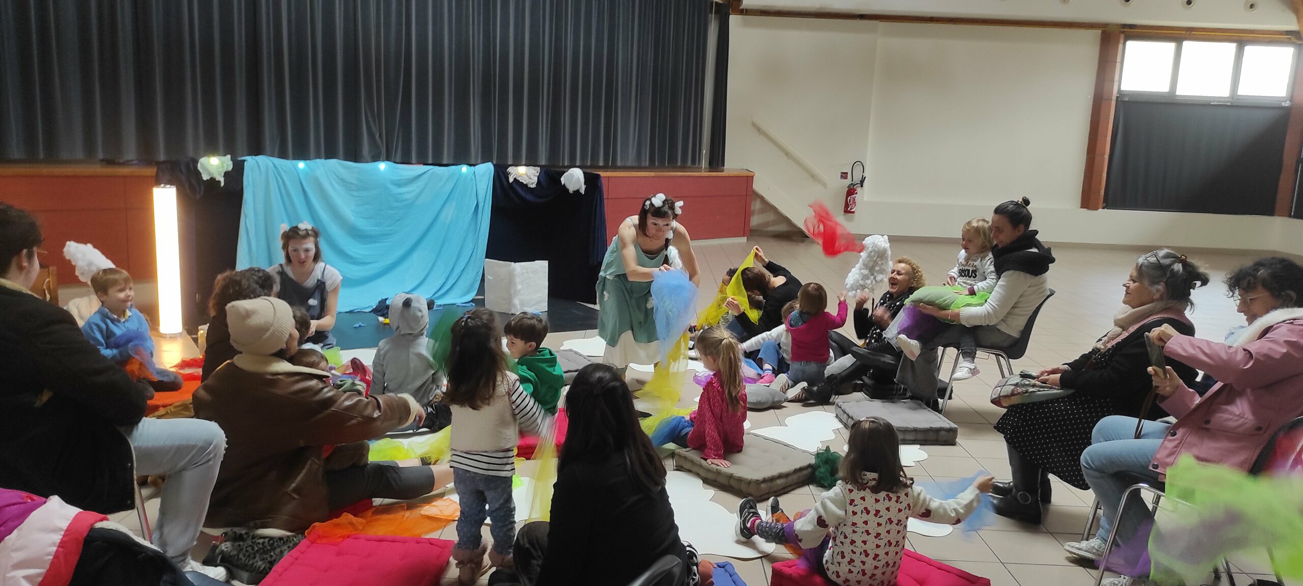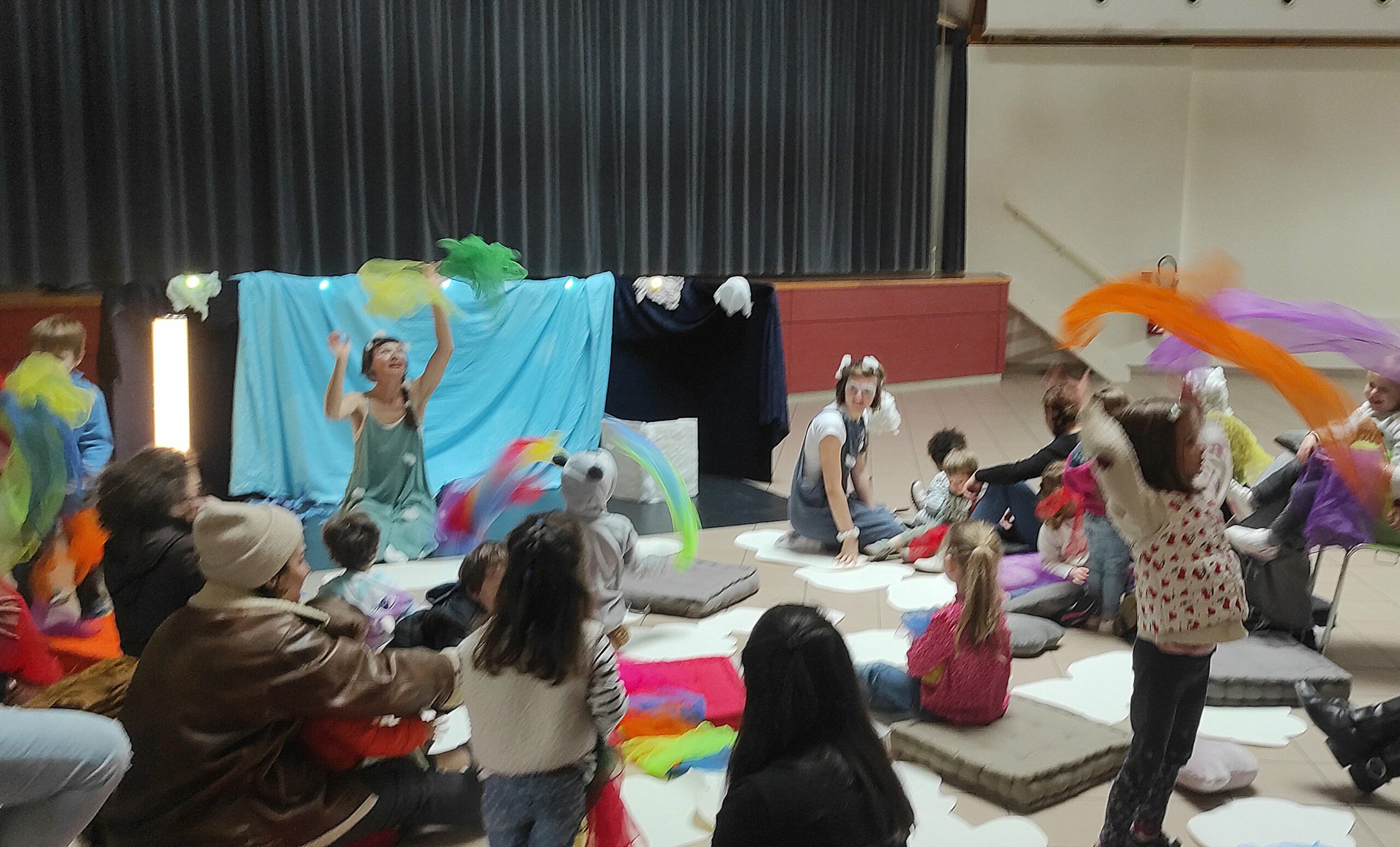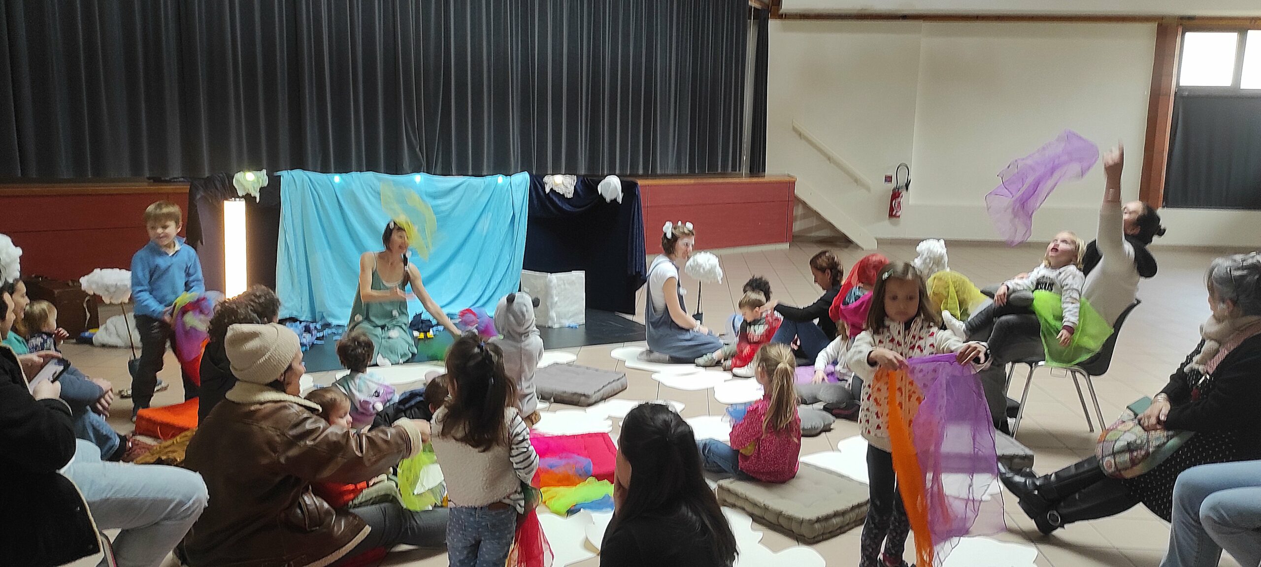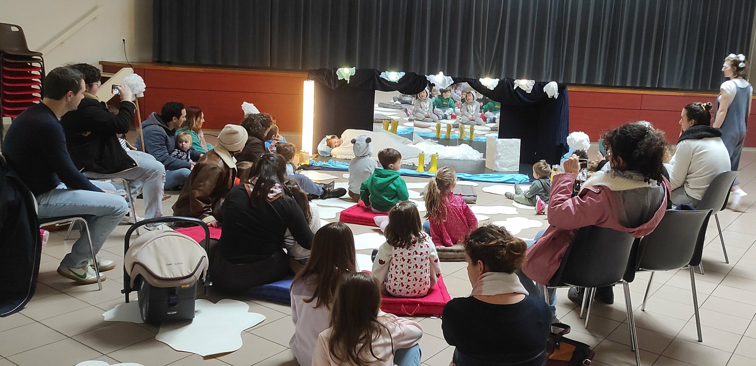 Cette 2e animation des vacances d’hiver a enchanté un public toujours au rendez-vous. Une douzaine de familles, soit 35 enfants et adultes, a profité de ce moment de poésie pour un voyage délicat dans les nuages, moment de partage et d’émerveillement chaleureux, vivement apprécié à l’occasion de ces vacances bien pluvieuses.