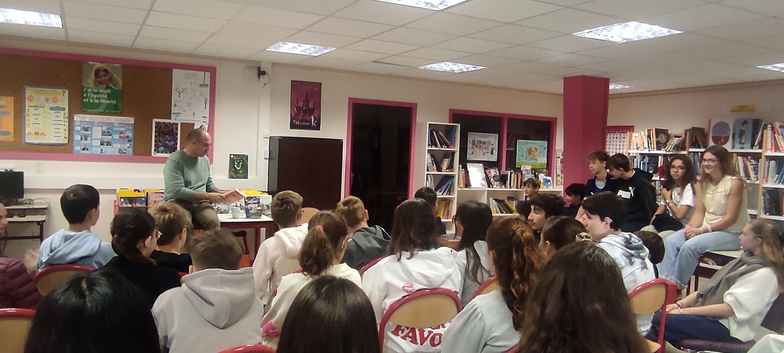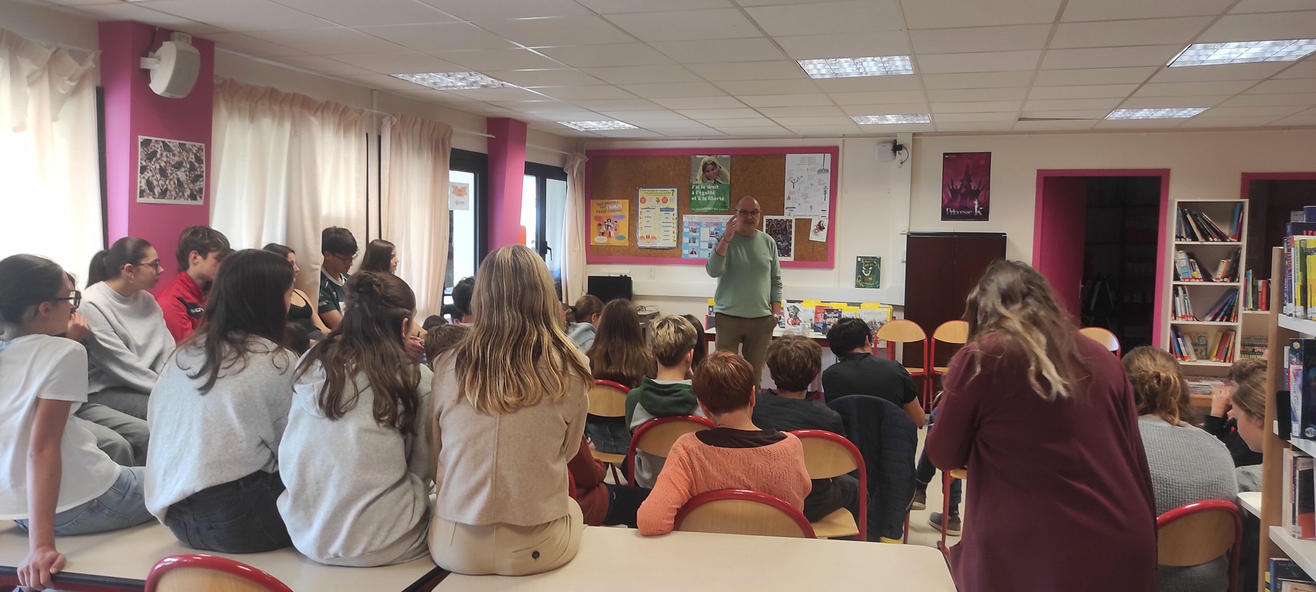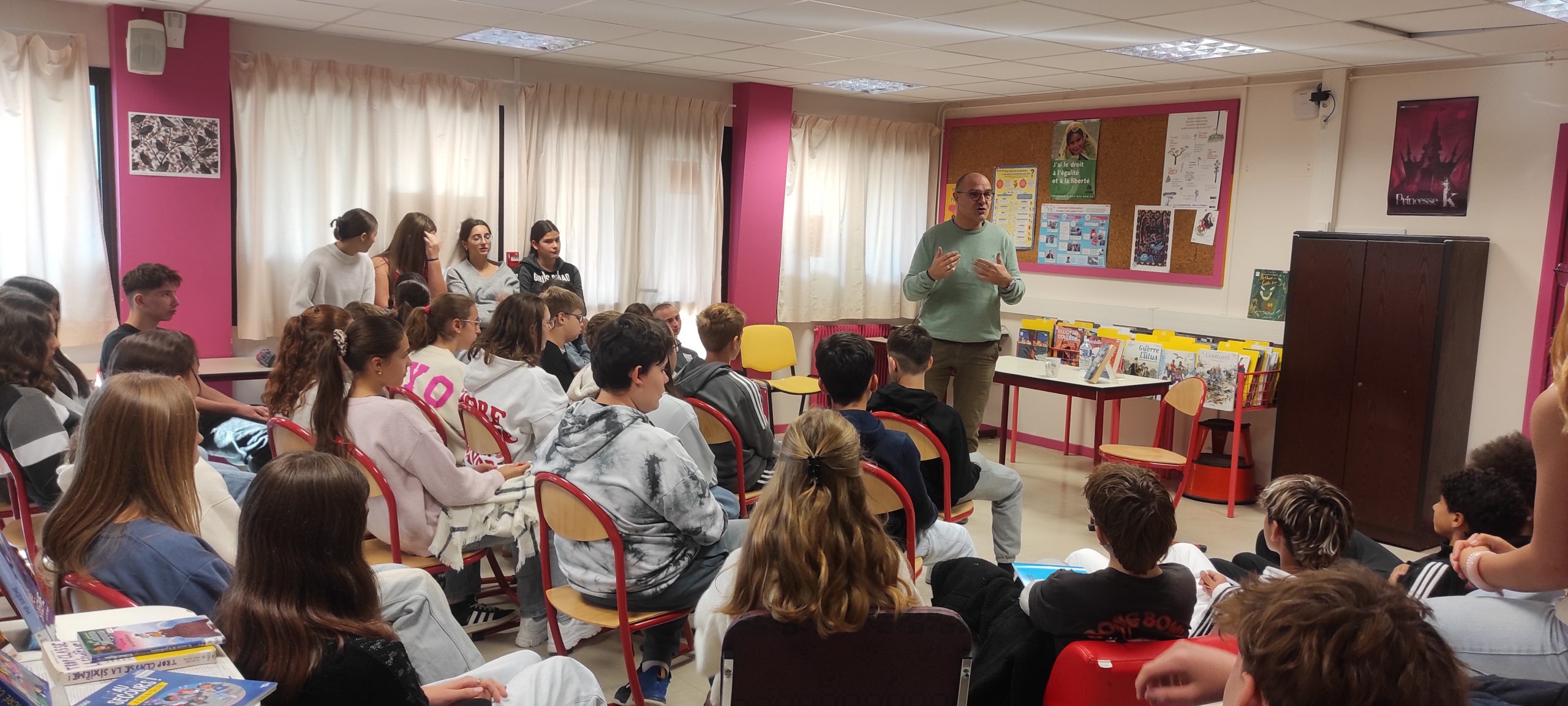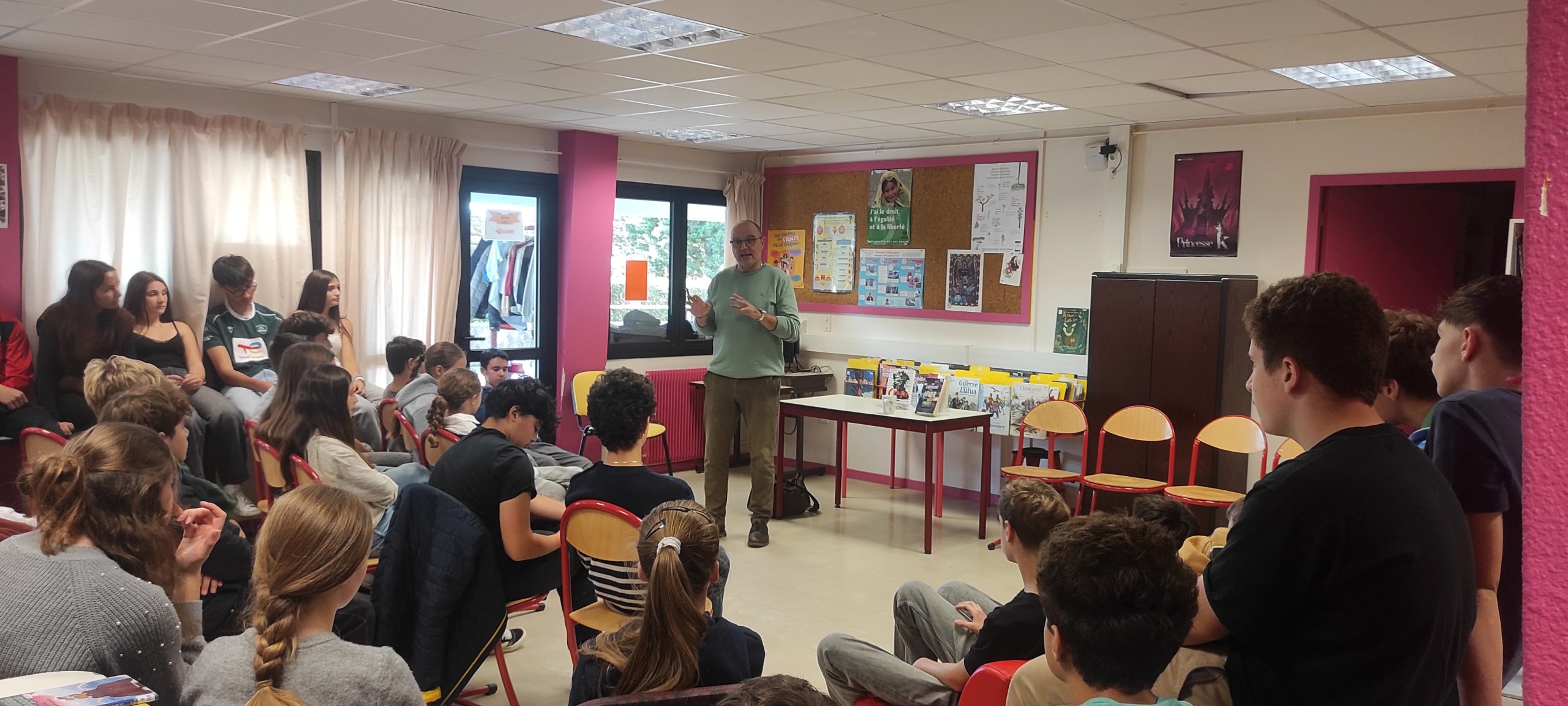 Mardi 7 octobre, il est venu au CDI du collège Corisande d’Andoins, dans le cadre du Salon du livre d’Orthez-Mourenx, rencontrer des élèves avec lesquels il a pu développer un dialogue riche et franc autour de diverses thématiques importantes : le métier d’écrivain, bien sûr, mais aussi l’actualité politique et sociale ainsi que le rôle de la culture et du livre… sans oublier d’évoquer la vie des jeunes d’aujourd’hui.