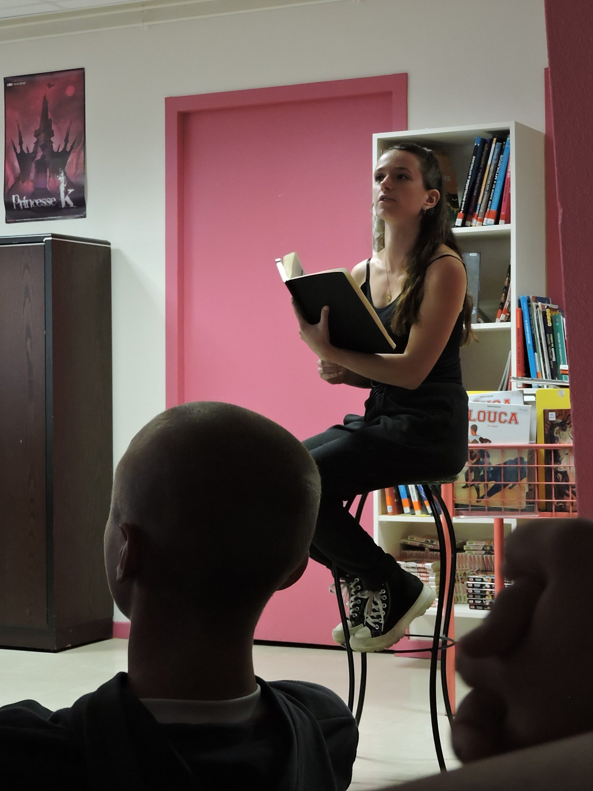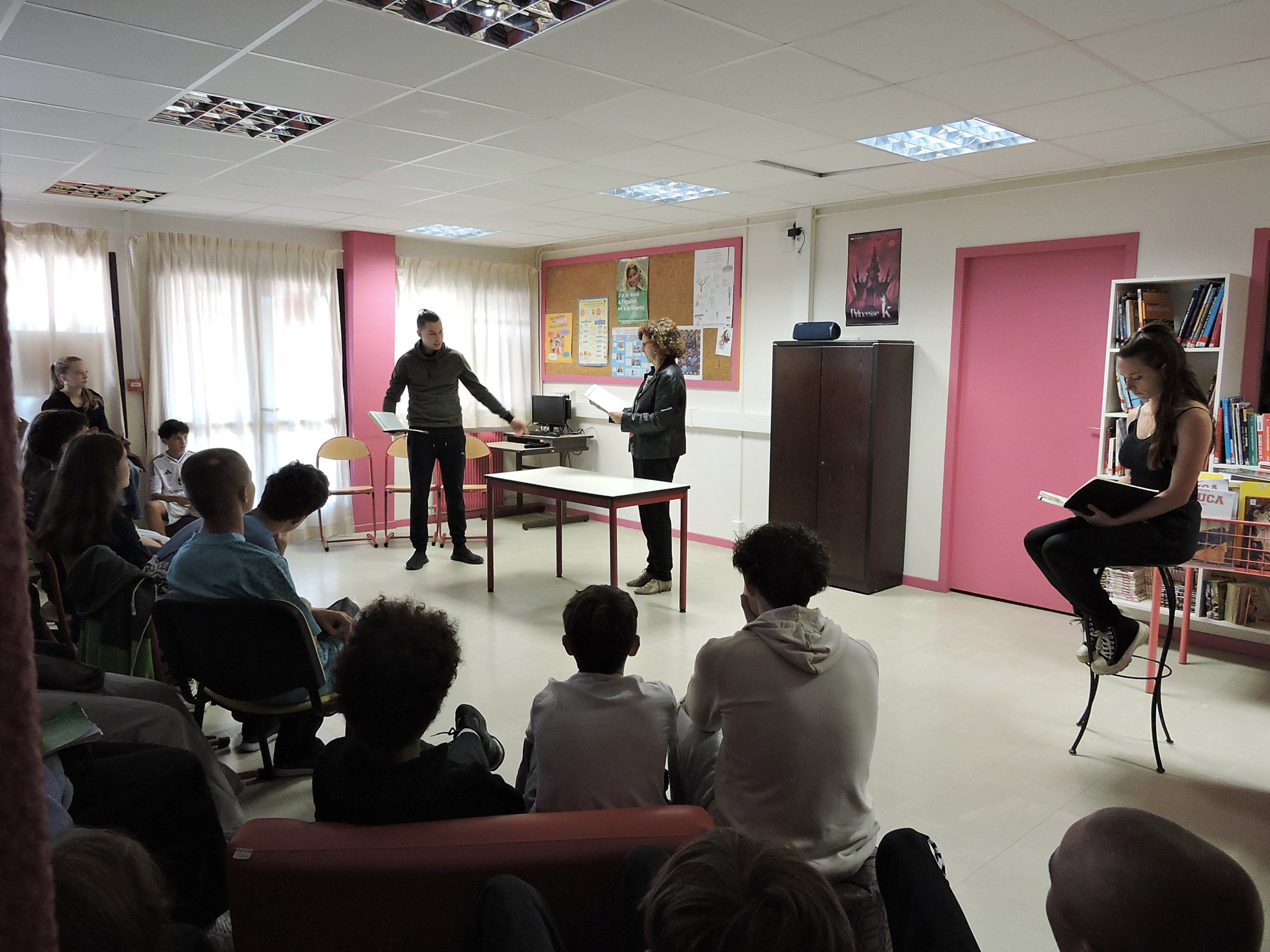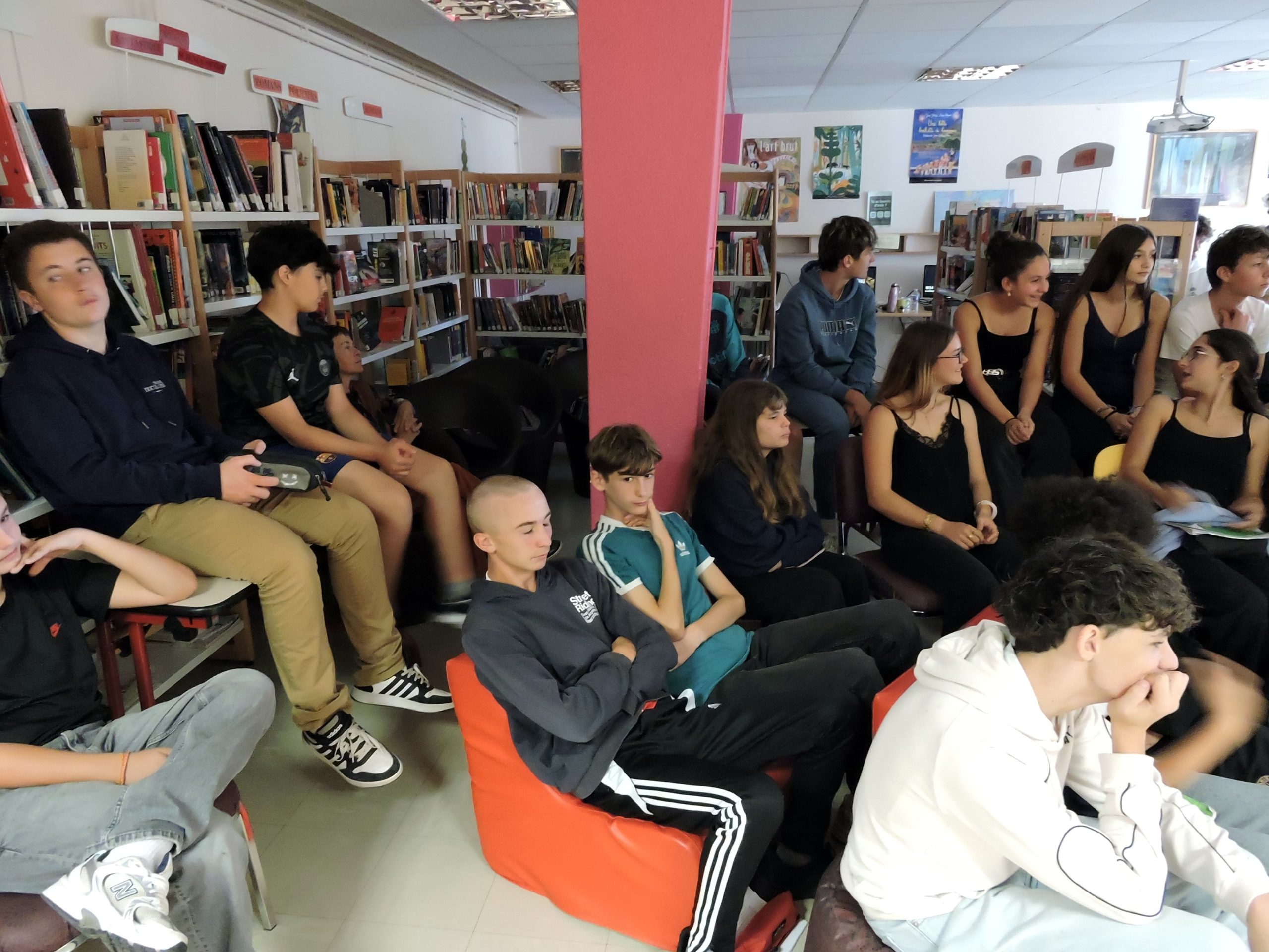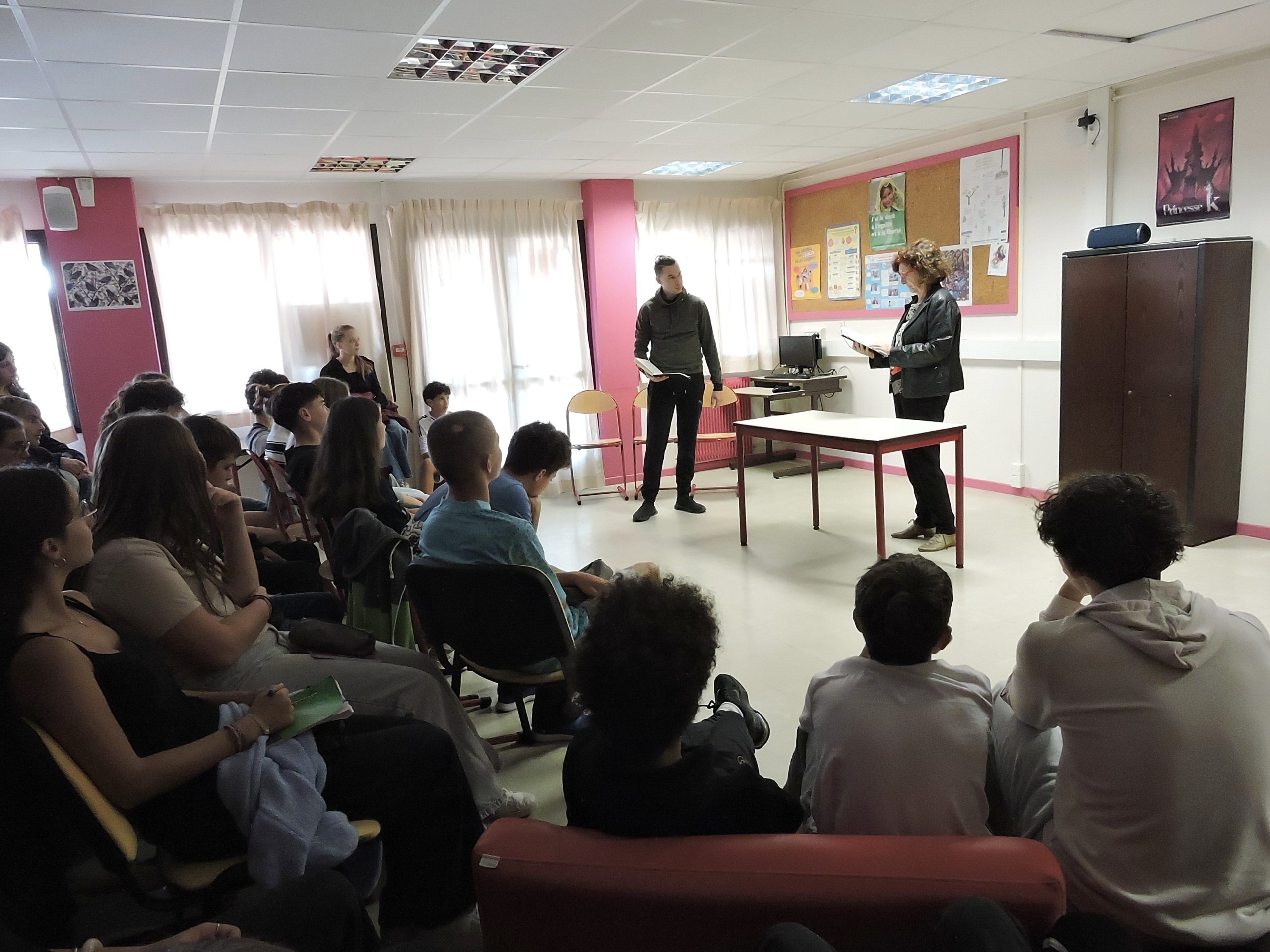 Réunis dans le CDI du collège, les élèves ont suivi avec concentration et émotion, ce spectacle vivant dans lequel l’auteur utilise la fiction pour aborder les mécanismes du harcèlement et de la construction du modèle viril contemporain.