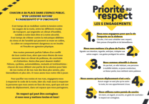 C’est tout le sens de la mobilisation « Priorité au respect » : rappeler que nous avons tous un rôle à jouer pour pacifier nos déplacements. Respecter le Code de la route, bien sûr, mais surtout respecter la personne en face de soi, quel que soit son mode de déplacement.