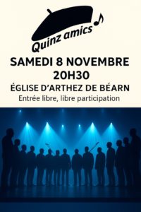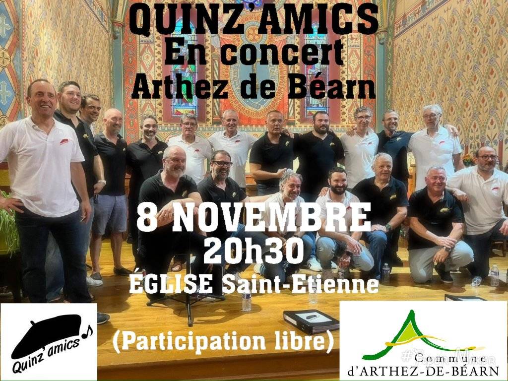 Le chœur d’hommes « Quinz’Amics » sera en concert samedi 8 novembre à 20 h 30 en l’église Saint-Etienne d’Arthez-de-Béarn.