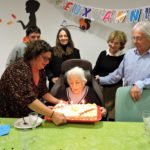 À l’occasion de son centenaire, elle a soufflé vaillamment les bougies et dégusté sa part de gâteau, entourée de sa famille, sa fille, sa petite-fille et ses deux arrière-petits-enfants.