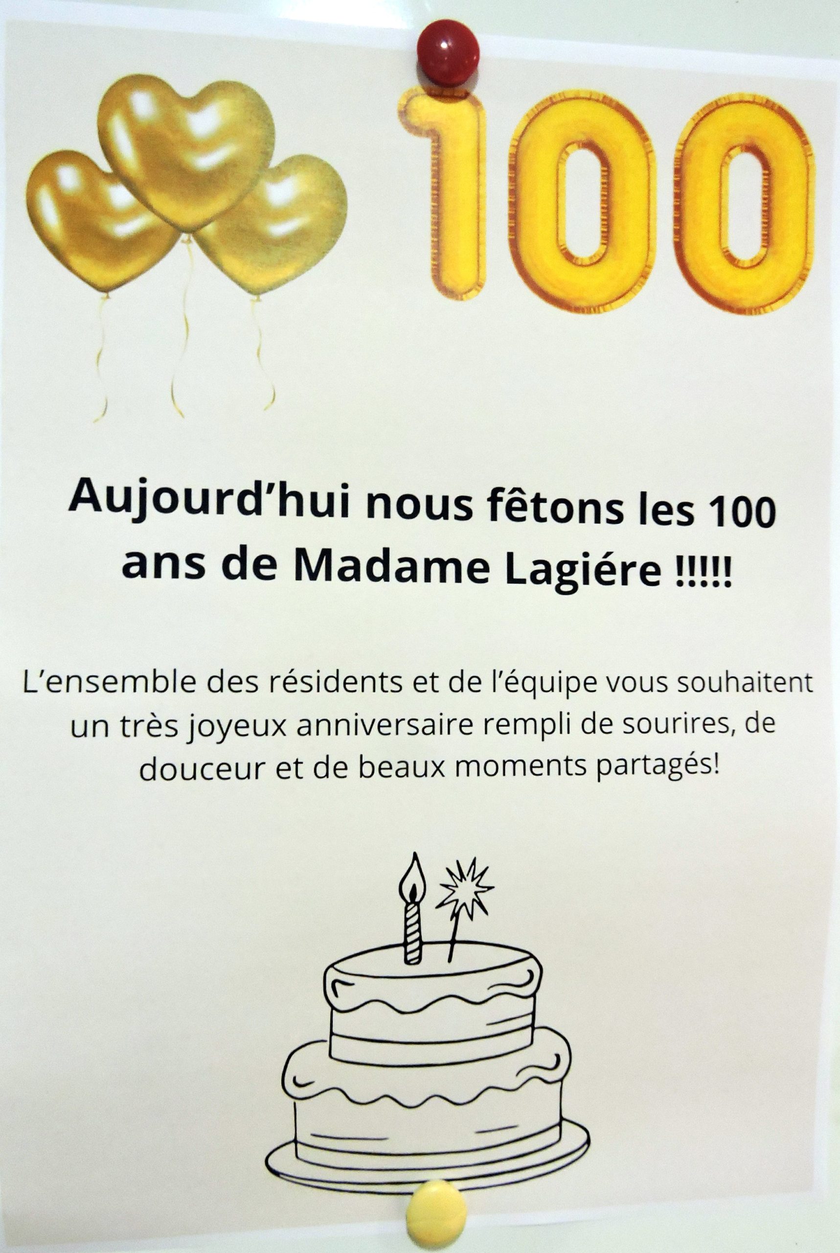 L’Ehpad Le Temple a vécu un sympathique anniversaire, lundi 24 novembre, à l’occasion des 100 ans d’Andrée Lagière.
