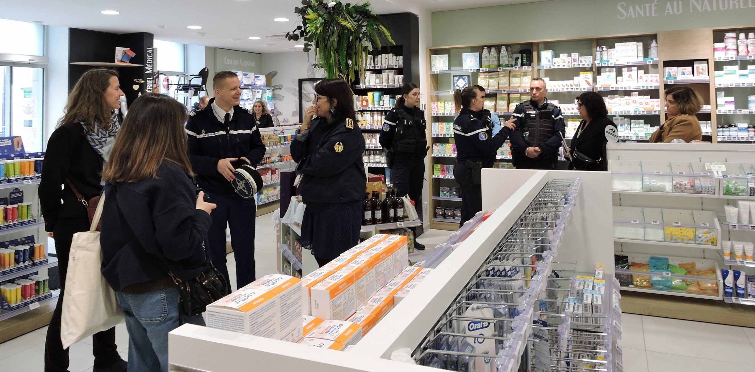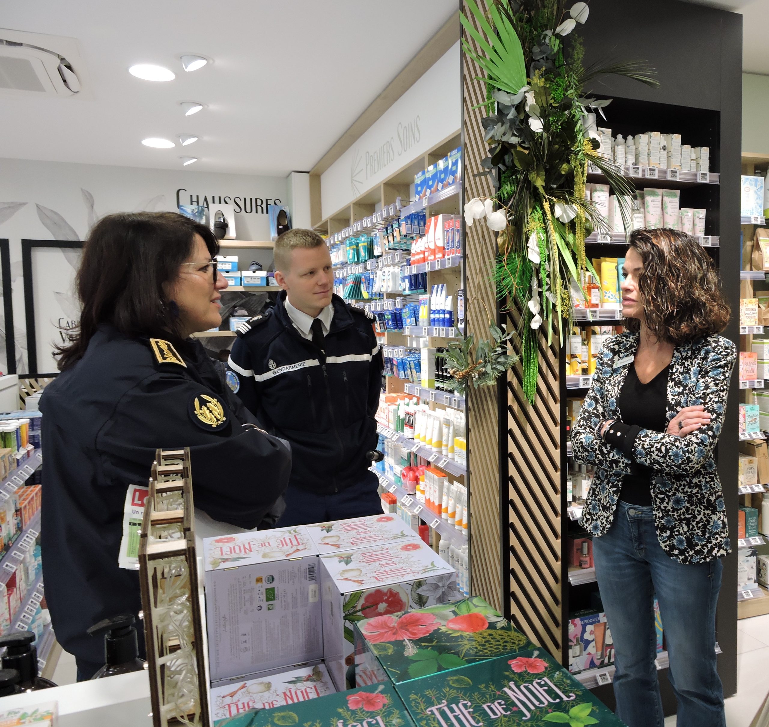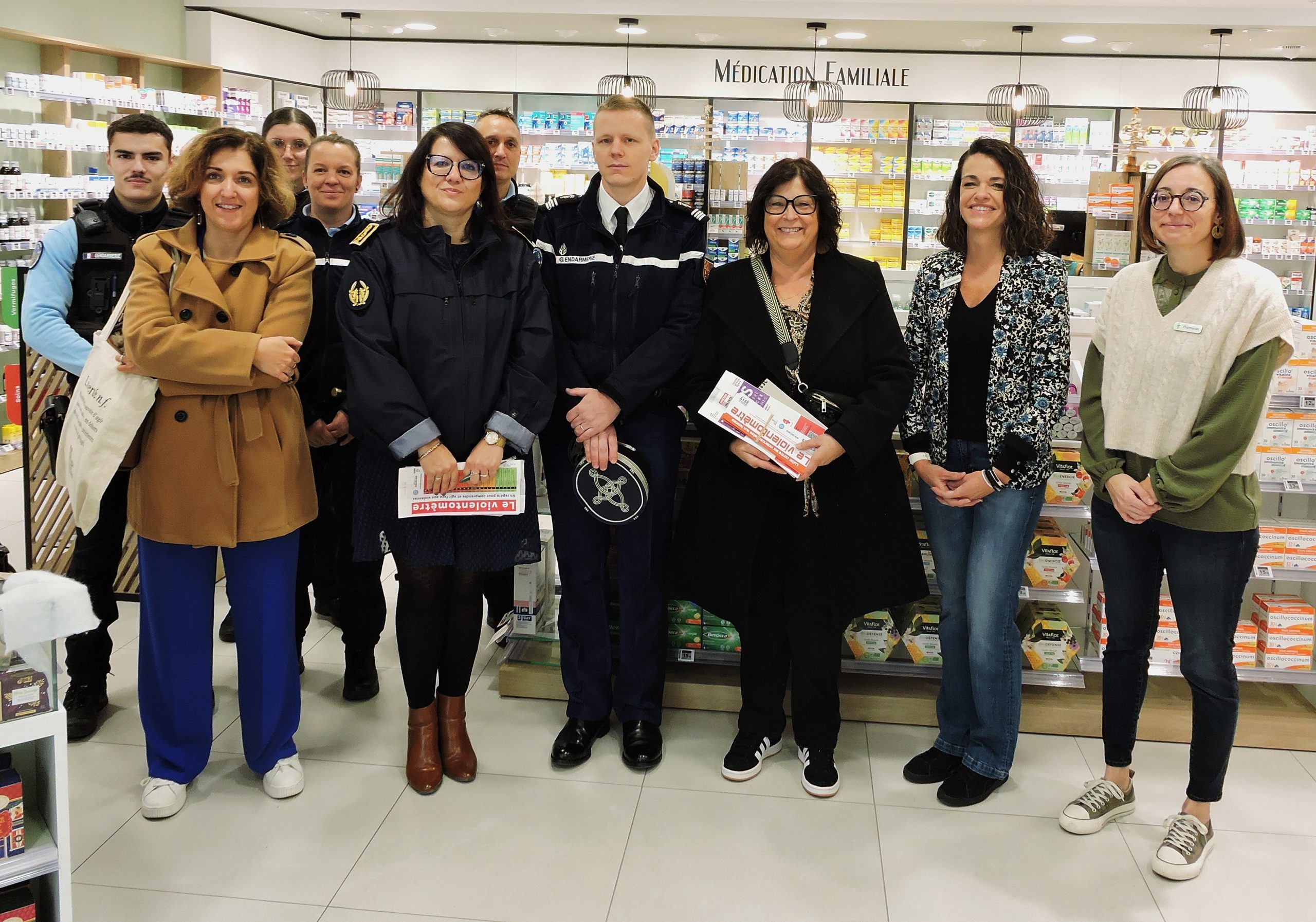 Aux côtés du Chef d’Escadron de la gendarmerie d’Orthez Rémi Galhié, et de la 1er adjointe au maire Isabelle Andrieu, les pharmaciennes arthéziennes Lydie Valières et Alexandra Lacaze ont exprimé leur satisfaction de participer à cette opération, estimant que « les violences faites aux femmes sont une réalité – en augmentation hélas – mais pas une fatalité ».