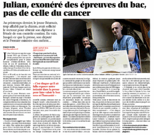 Grâce à la médiatisation par le journal Sud-Ouest, la situation terrible que vivait Julian Cabanes avait ému le monde politique, et l’Éducation Nationale lui avait enfin accordé le Baccalauréat à l’étude de son contrôle continu « à titre exceptionnel ».