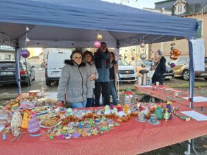 Vendredi 12 décembre à la sortie de l’école, samedi 13 au marché et dimanche 14 à la messe dominicale, parents d’élèves et enseignantes ont proposé à la vente de nombreux bibelots, objets décoratifs et gourmandises sur le thème de Noël, le tout intégralement réalisé par les enfants, avec le soutien de quelques parents et grands-parents.