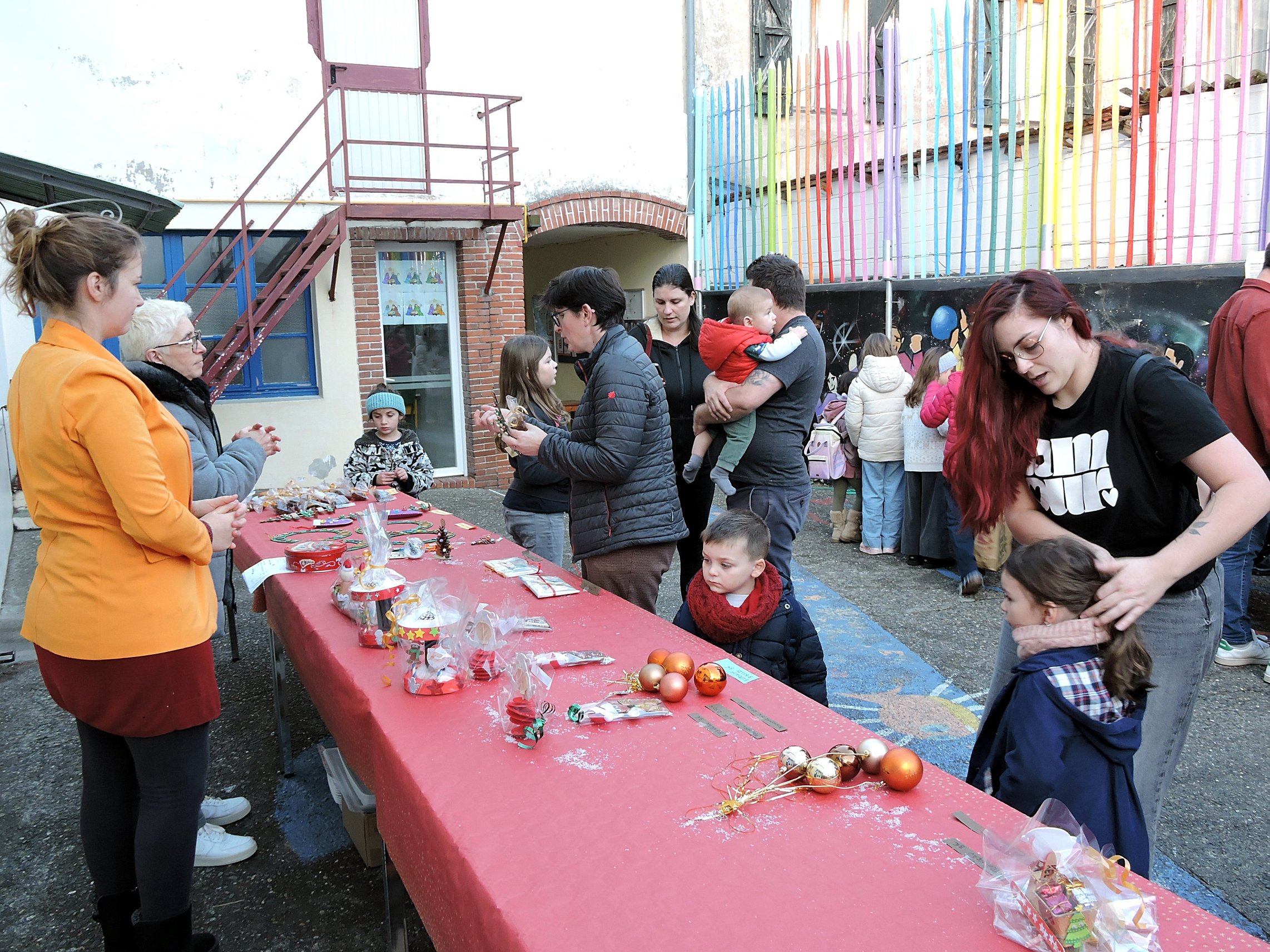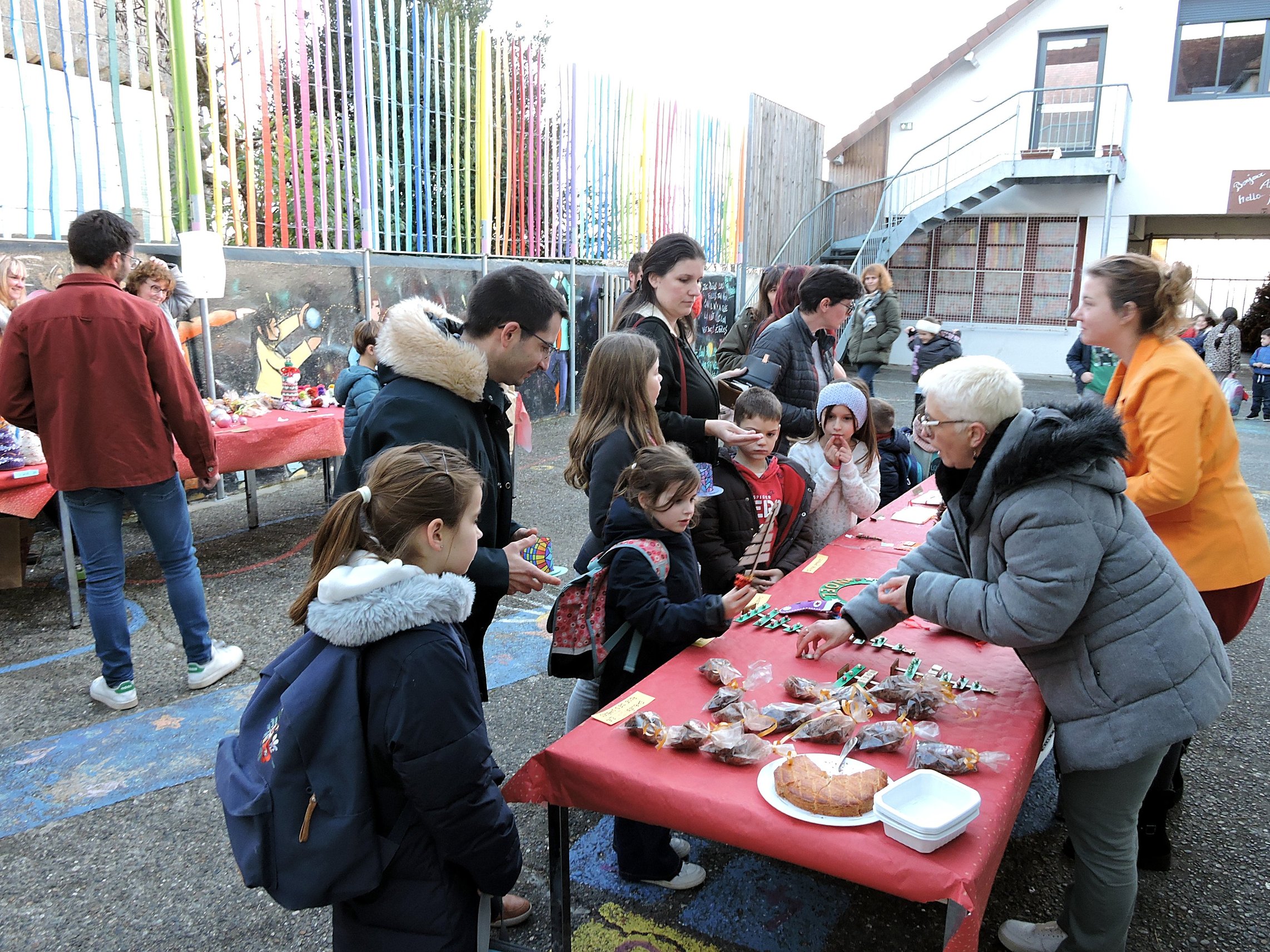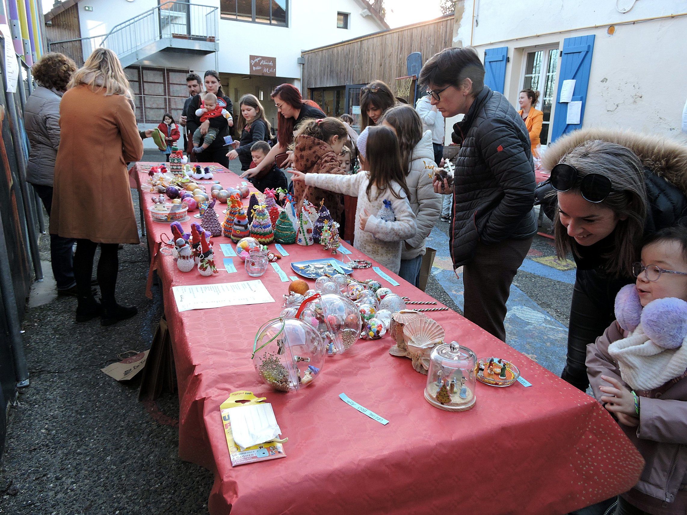 Vendredi 12 décembre à la sortie de l’école, samedi 13 au marché et dimanche 14 à la messe dominicale, parents d’élèves et enseignantes ont proposé à la vente de nombreux bibelots, objets décoratifs et gourmandises sur le thème de Noël, le tout intégralement réalisé par les enfants, avec le soutien de quelques parents et grands-parents.