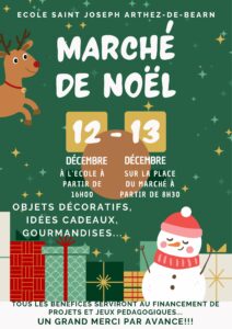 Le marché de Noël de l’école Saint-Joseph aura lieu vendredi 12 décembre à partir de 16 heures à l’école et samedi 13 Décembre au matin sur la place du marché.
