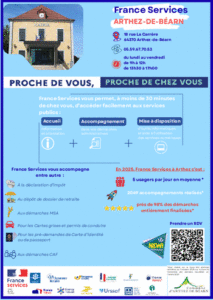 L’agence postale communale assure la continuité du service public, avec l’espace France Services et un dispositif de recueil des demandes de passeport et cartes d’identité. Elle est ouverte le lundi de 13 h 30 à 17 heures, du mardi au vendredi de 9 heures à 12 heures et de 13 h 30 à 17 heures, le samedi de 9 heures à 12 heures.