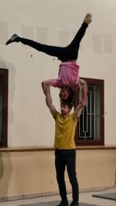 Cet après-midi magique s’est achevé par le spectacle « tricot » de la Kirn Compagnie, proposé par Lacaze aux sottises : les deux acrobates ont ravi petits et grands par leurs prouesses et facéties.
