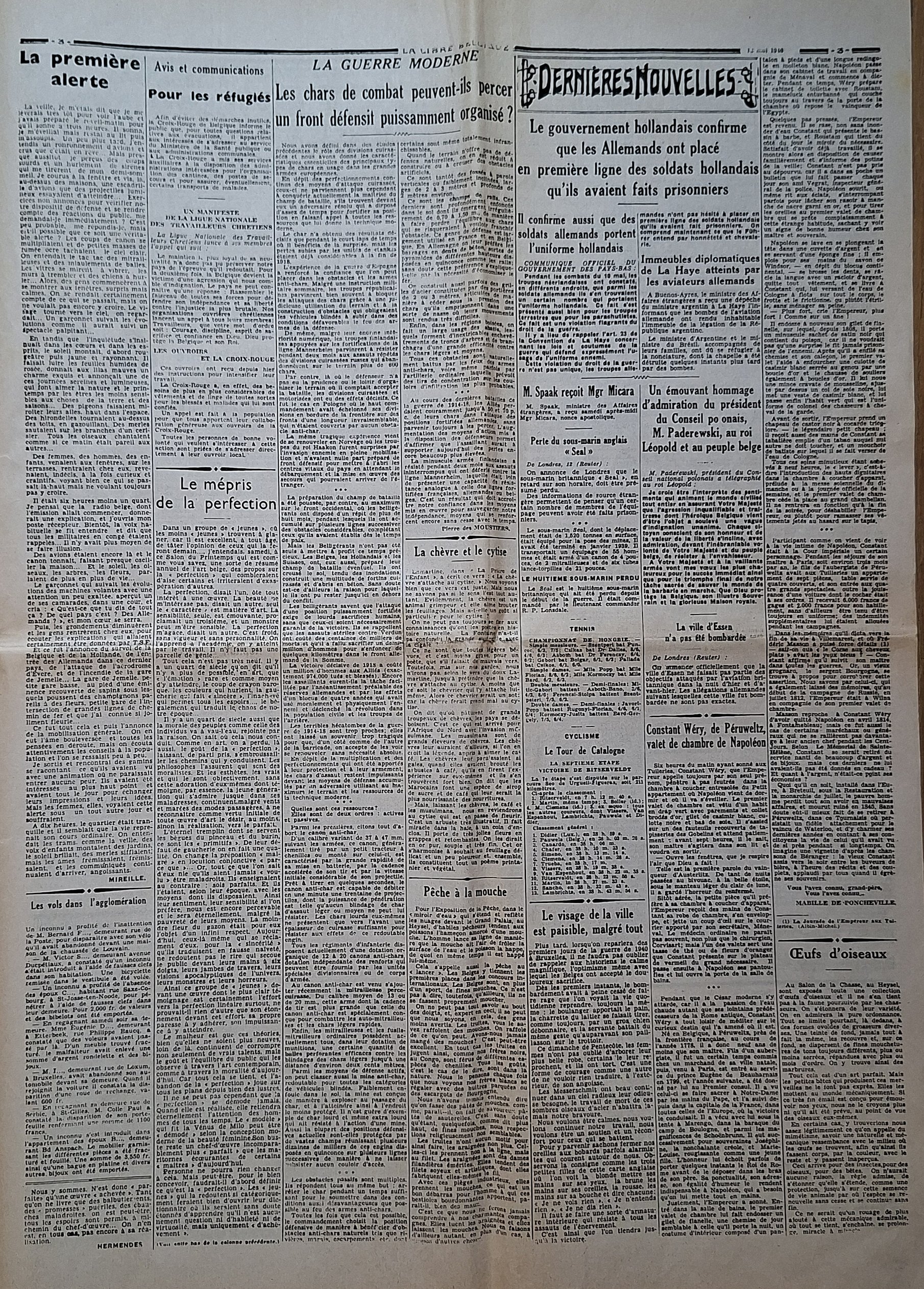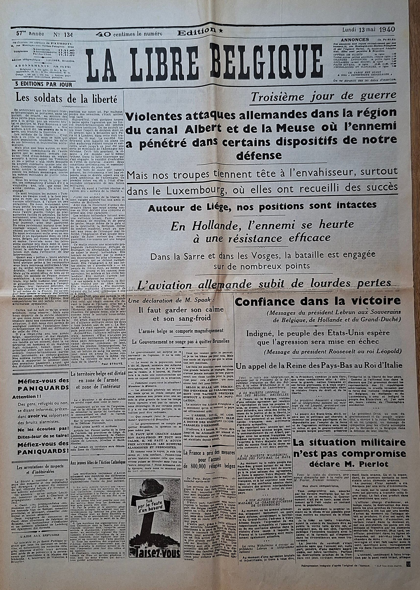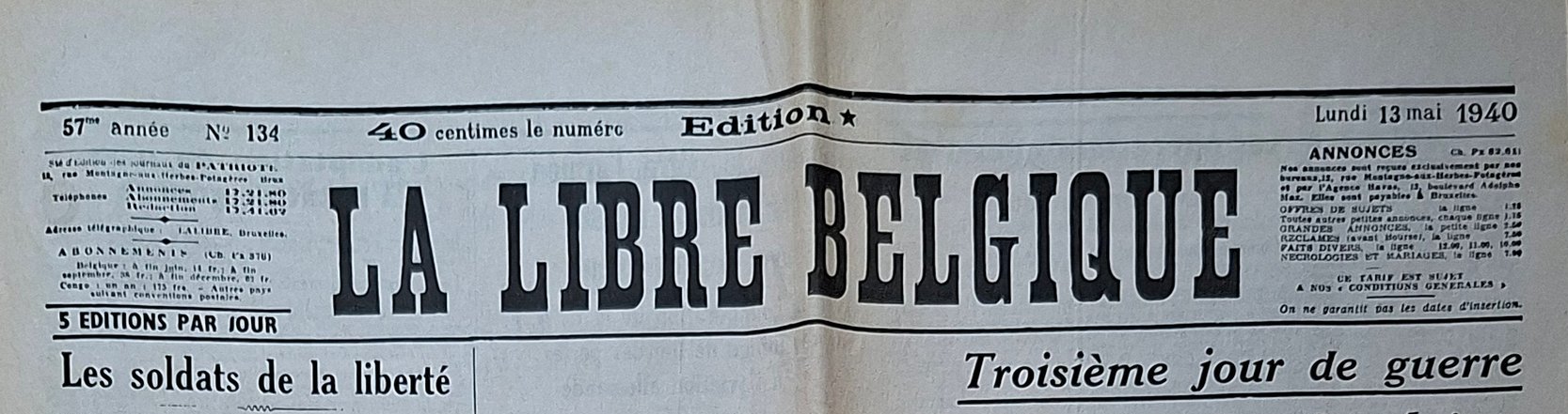 Le journal La libre Belgique évoque lui la journée du lundi 13 mai 1940 :