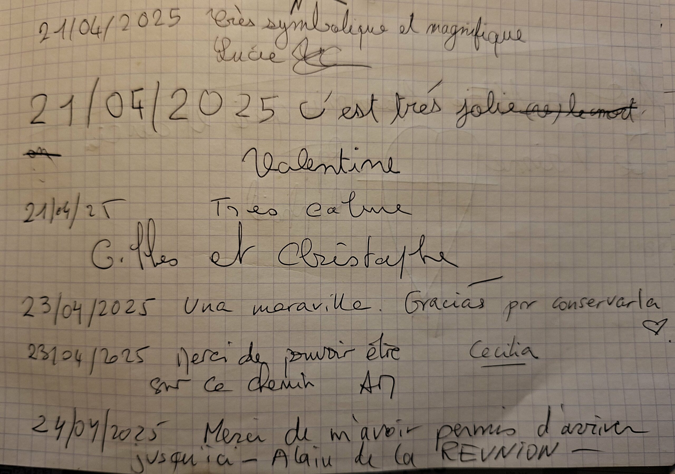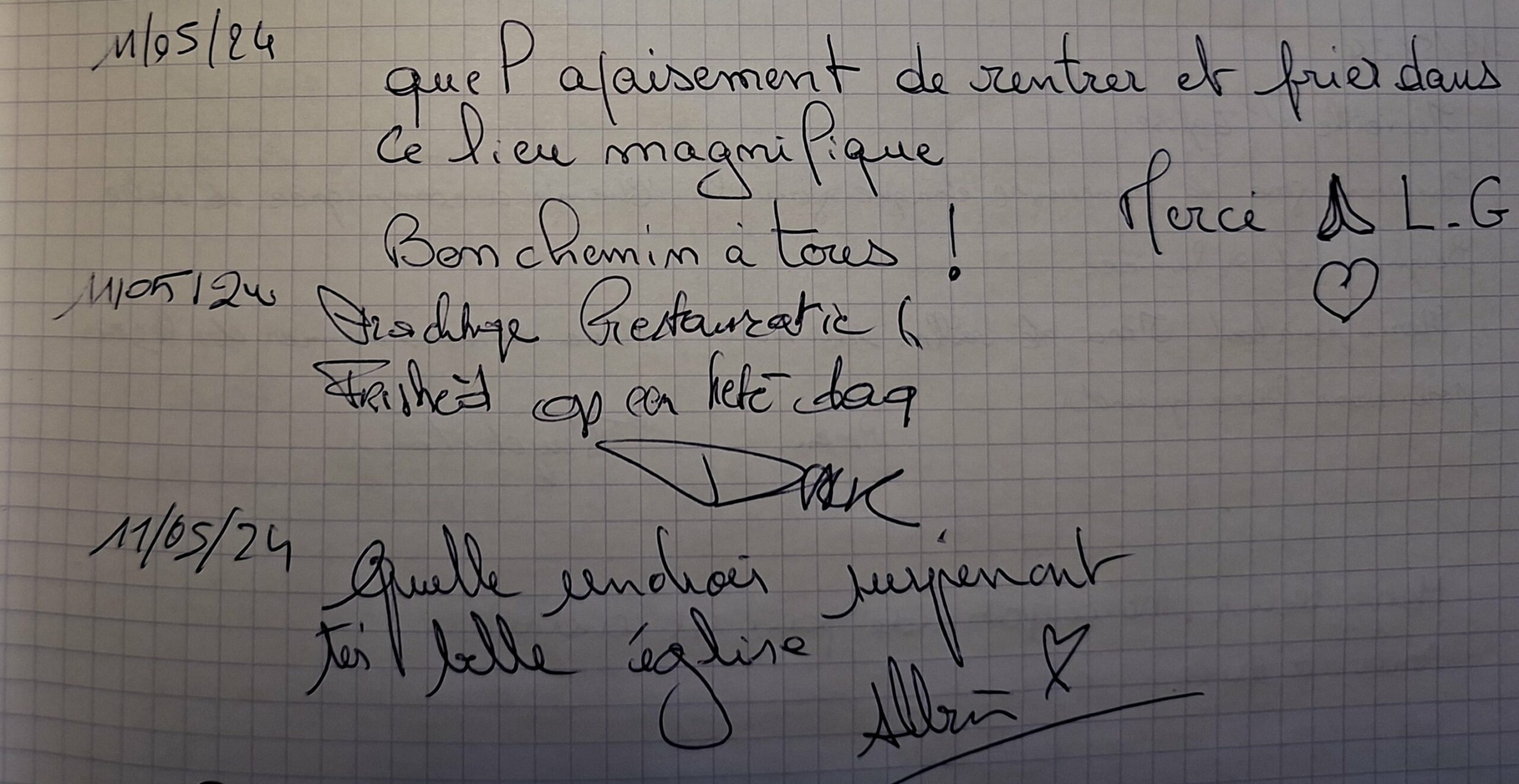 Voici quelques-uns des innombrables petits mots laissés par des visiteurs émerveillés devant la beauté du lieu :