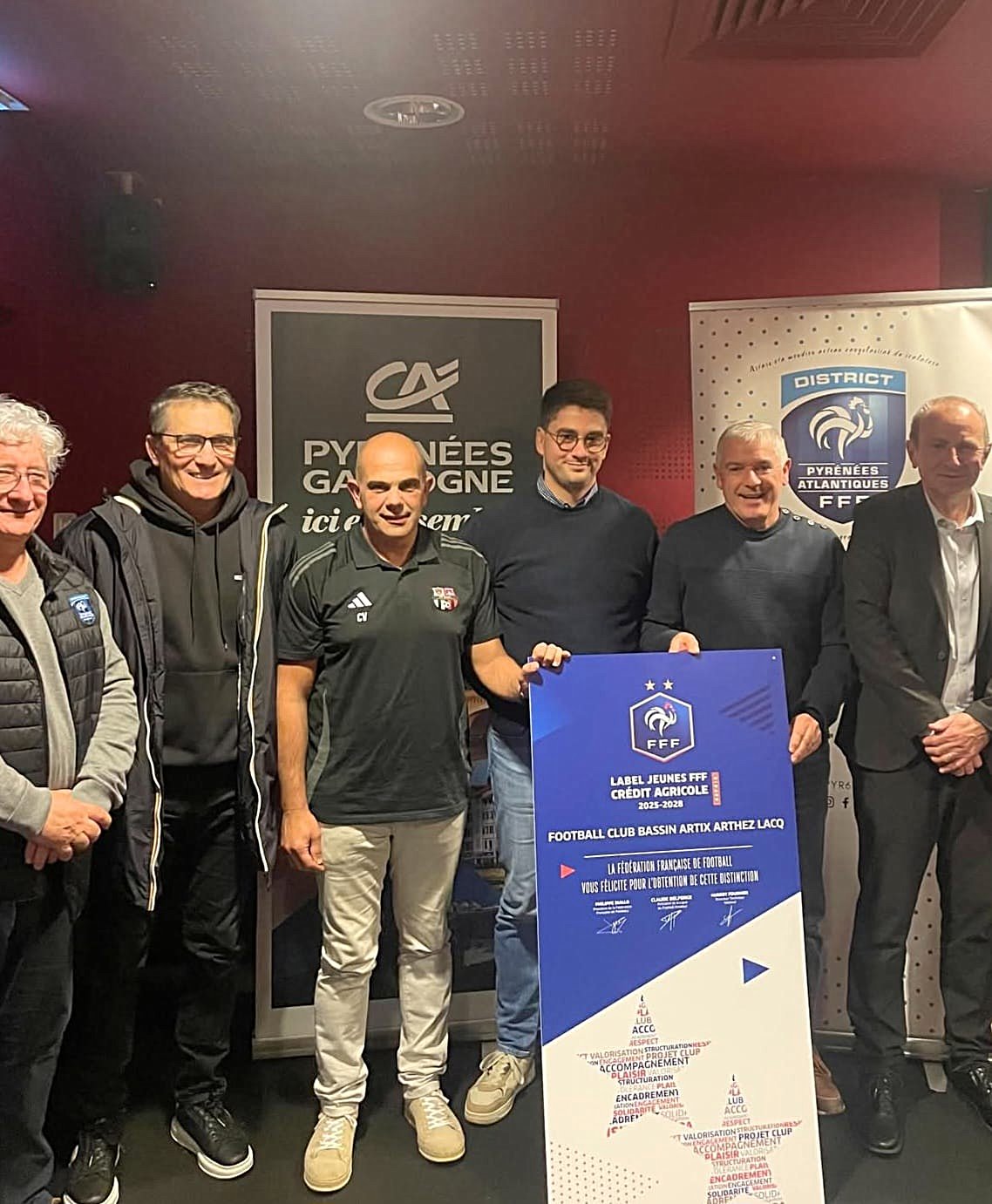 « Il couronne également une dynamique de club basée sur la structuration, l’organisation et la montée en compétence continue de nos éducateurs, soulignent les coprésidents, et nous adressons un remerciement particulier au District 64, et notamment aux techniciens Cédric Caillabet, Jean-Noël Latour, Johan ST-Macary, pour leur soutien, leurs conseils et leur accompagnement déterminant dans l’obtention de ce label ».