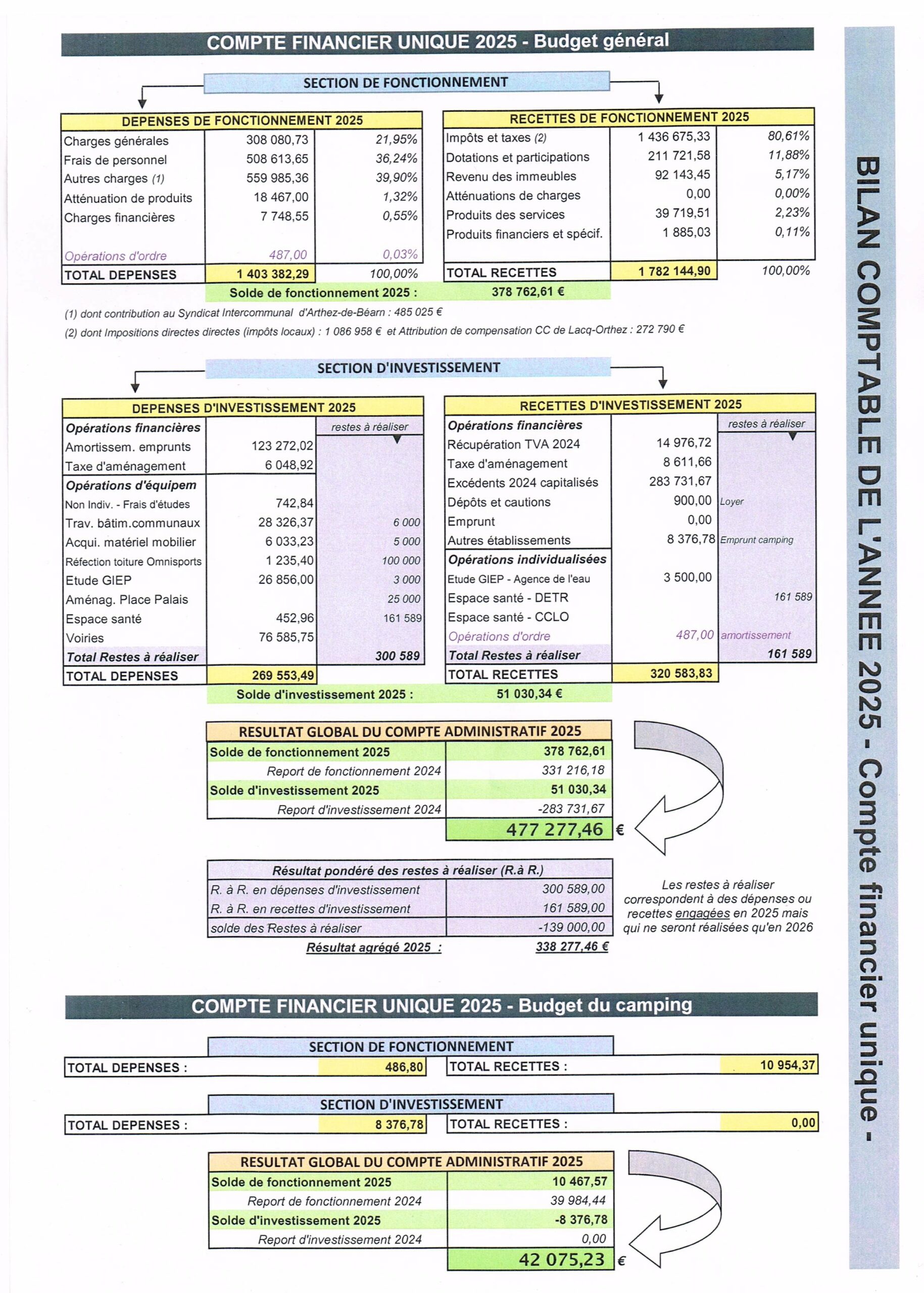 Le compte financier 2025, présenté par le secrétaire général, fait apparaître un résultat final agrégé de 338 277, 46 €.