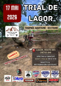 - On peut déjà retenir la date du 17 mai, pour le Trial de Lagor, comptant pour le trophée Aquitaine-Occitanie.