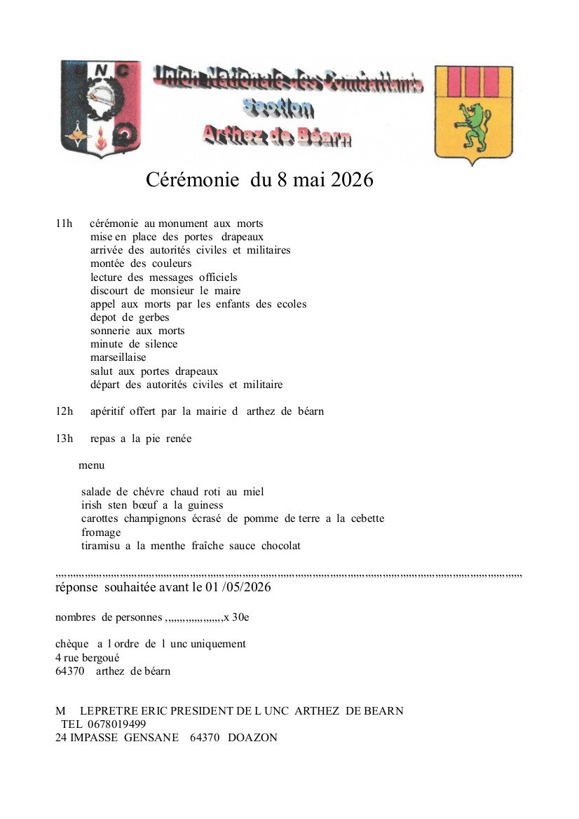 La section d’Arthez-de-Béarn de l’Union Nationale des Combattants (UNC) prépare la cérémonie commémorative du vendredi 8 mai.