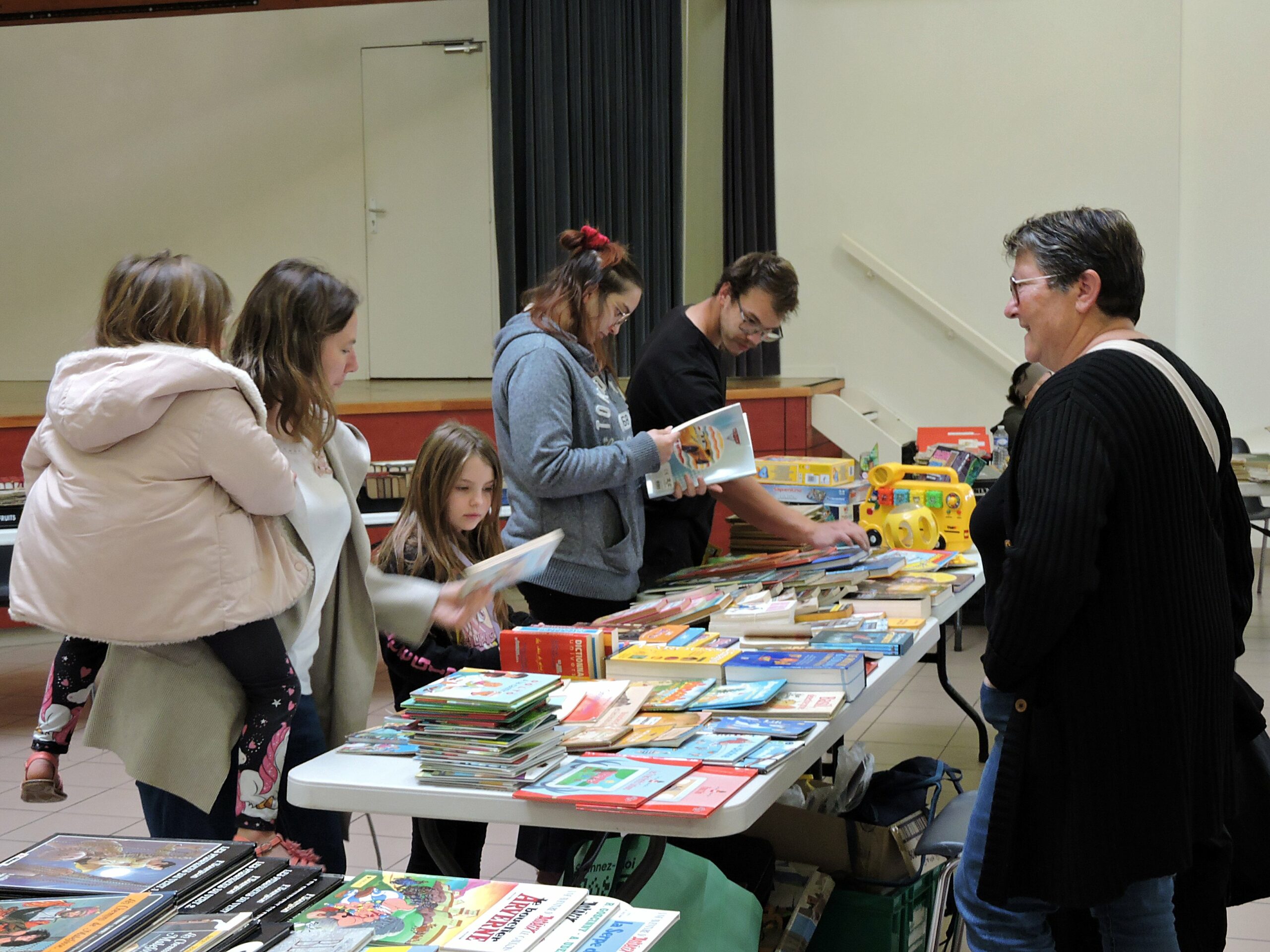 Une quinzaine de stands étaient installés et un bon nombre de visiteurs sont venus, souvent en famille, arpenter les allées de la salle socioculturelle, à la recherche d’ouvrages et de jouets à petits prix.